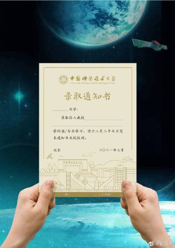 #用录取通知书致敬父母恩师#【抢先看!#中国科大2021年录取通知书公布#】中国科学技术大学2021年录取通知书主题为致青春、致父母、致恩师。被录取的学生将收到一个主体为红色的礼盒,包含圆筒状录取通知书、“科学家”奖章和育才奖章。由于中国科大的学生家长一直被亲切地称为“科学家”,因此以该奖章感恩父母。育才奖章是向学生恩师致敬,感谢培育之恩。中国科大招生办公室希望收到录取通知书的学子们,瀚海同奔涌,星云比光华,做顶天立地的中国科大人。(记者周畅)
