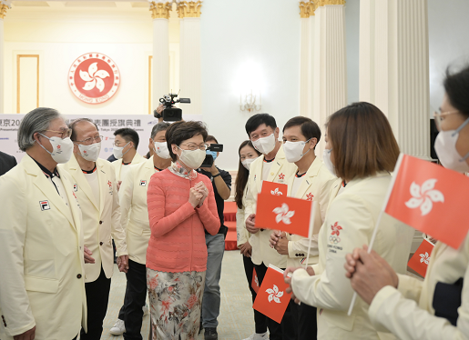 7月8日下午,香港特区政府在礼宾府举行东京2020奥运会中国香港代表团授旗典礼。