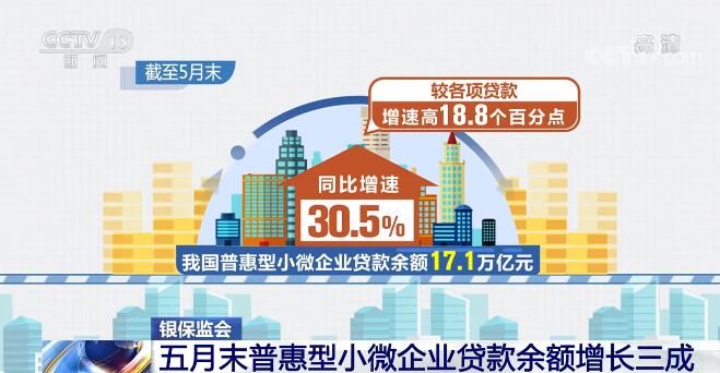 统计显示,截至5月末,我国普惠型小微企业贷款余额17.1万亿元,同比增速30.5%,较各项贷款增速高18.8个百分点;有贷款余额户数2863.4万户,同比增加570.7万户。