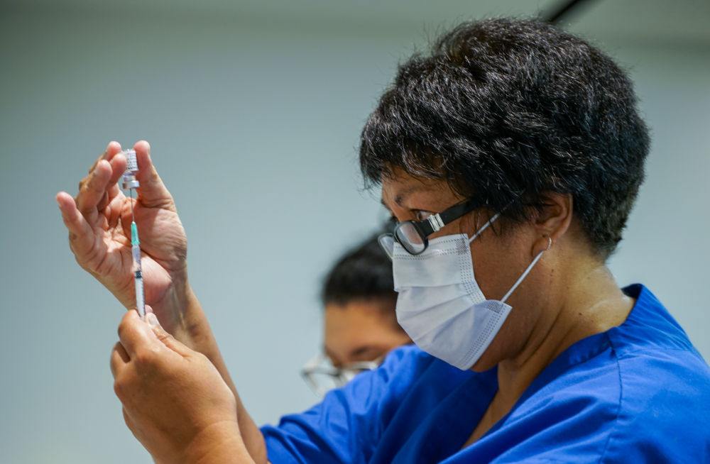 2月19日,医务人员在新西兰奥克兰进行新冠疫苗接种的准备工作。(新华社发)