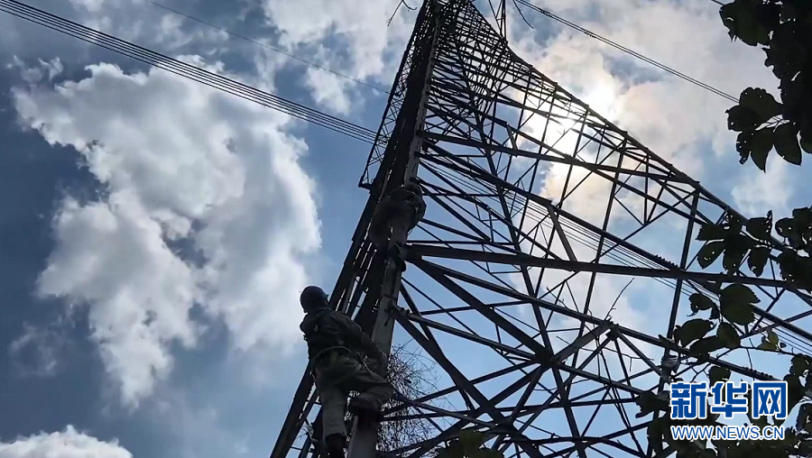 广东持续高温,进入“烧烤模式”,电网全面进入高温高负荷的“迎峰度夏”模式。南方电网工作人员高温下爬上铁塔。新华网发