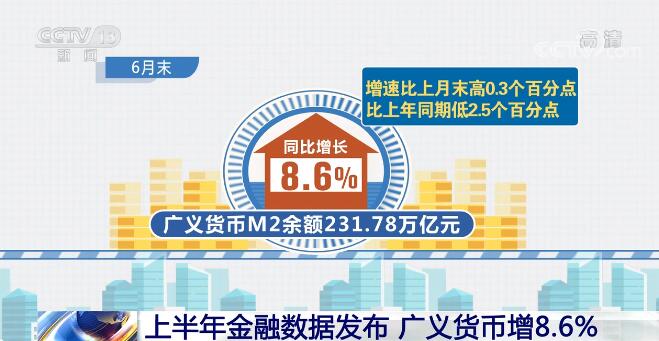 央视网消息:昨天(7月9日),央行发布了2021年上半年金融统计数据:6月末,广义货币M2余额231.78万亿元,同比增长8.6%,增速比上月末高0.3个百分点,比上年同期低2.5个百分点。6月份,人民币贷款增加2.12万亿元,同比多增3086亿元。