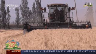 总台记者 崔宁:我现在在新疆奇台县腰站子村的一片麦田地里,这也是今年当地开镰最早的一块冬小麦地。一眼看过去,麦浪滚滚,丰收在望。这几天天气也持续晴好,非常适合小麦收割。