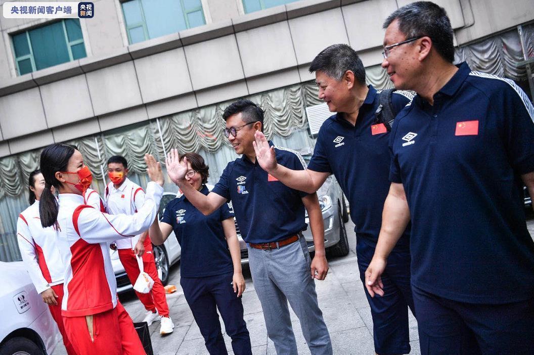 7月10日,中国帆船帆板队从北京天坛饭店出发去往首都机场,乘坐包机飞往日本东京。中国帆船帆板运动协会为队伍送行。