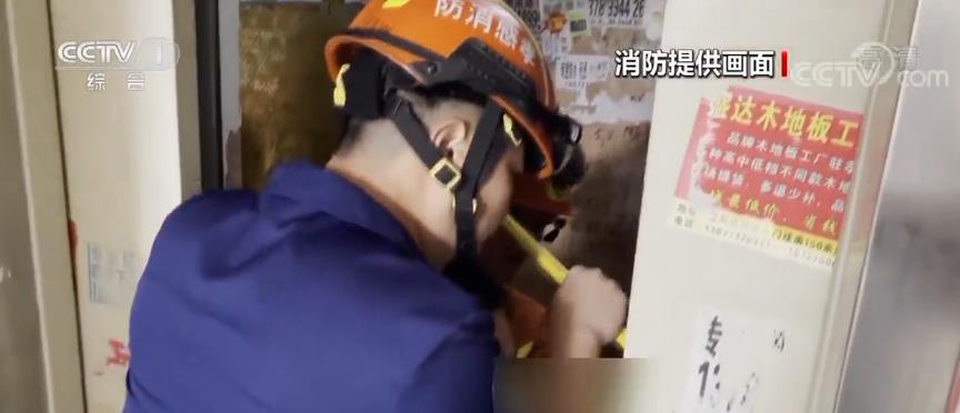 近日,湖北孝感一名一岁婴儿的左手不慎伸到电梯门缝里被卡。消防员到场后,立即用撬棍在电梯门上撑出一道缝隙,婴儿很快脱困。