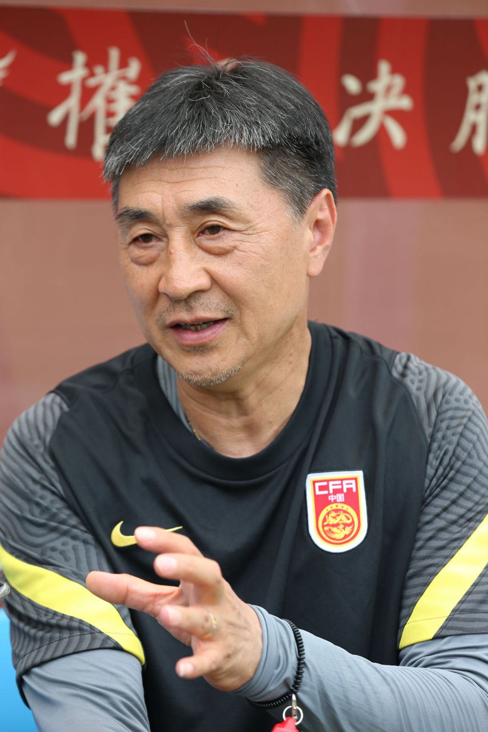 ↑7月10日,中国女足主教练贾秀全在公开训练课上。新华社记者 丁旭 摄