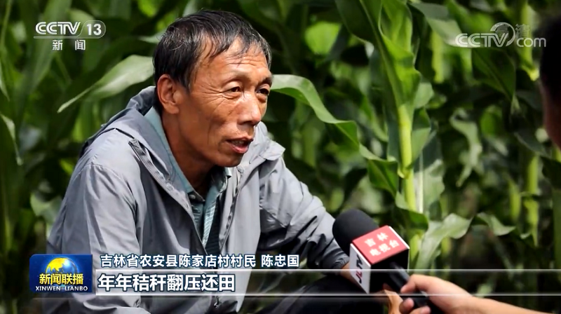 吉林省农安县陈家店村村民 陈忠国:为啥说今年的苞米好,年年秸秆压还田,地里的有机质增多了,地不发生板结了,你看我们现在这土壤你看抓起来一把,稀松。
