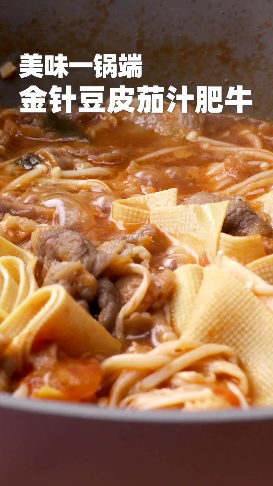 #美食时间#【金针菇豆皮番茄肥牛】简单易学又好吃,周末在家做起来~懒饭App的微博视频