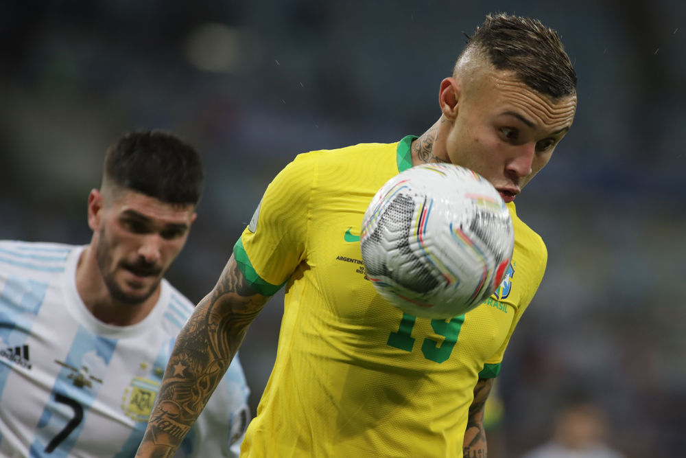↑巴西队球员埃弗顿(右)在比赛中。新华社发(拉赫尔·帕特拉索摄)