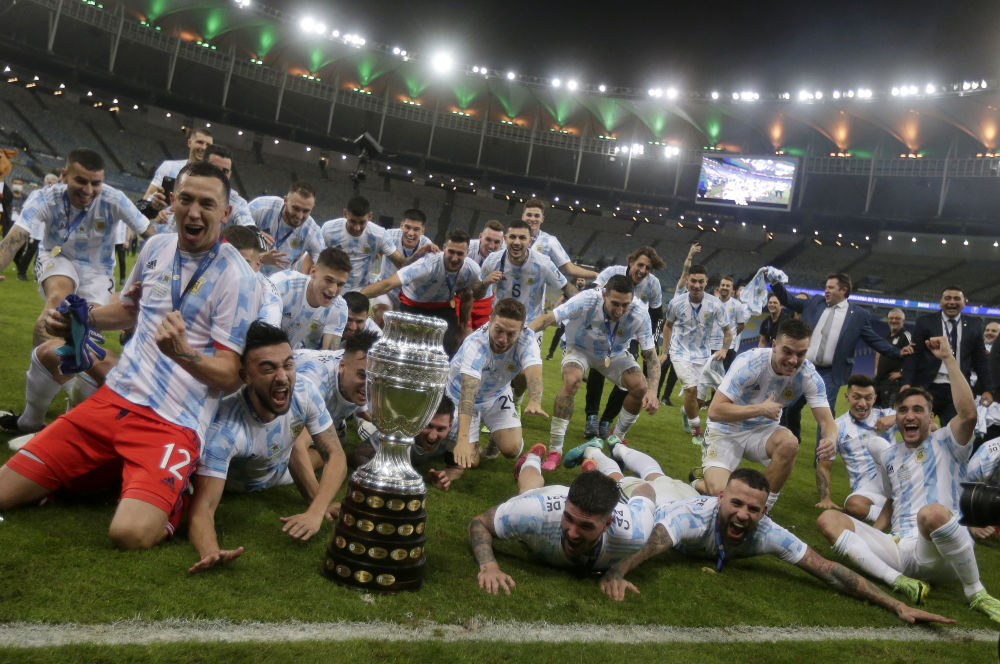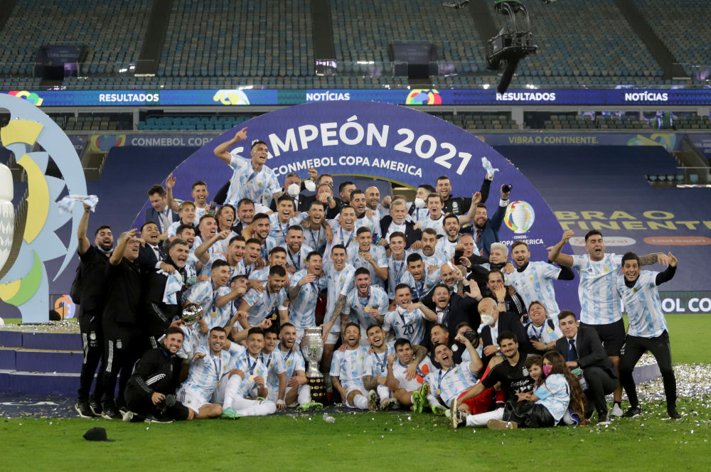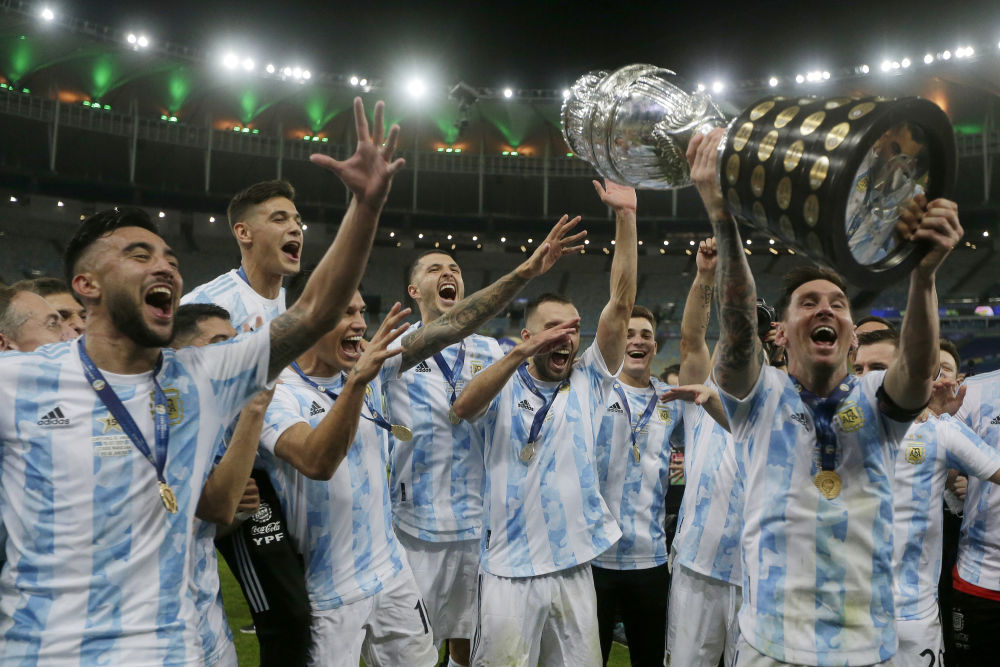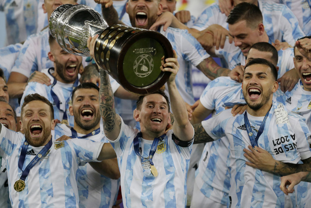 当地时间7月10日,在巴西里约热内卢马拉卡纳大球场举行的2021年美洲杯决赛中,梅西率领的阿根廷队以1比0战胜巴西队,获得冠军。