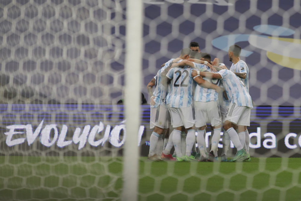 ↑阿根廷队球员庆祝进球。新华社发(拉赫尔·帕特拉索摄)