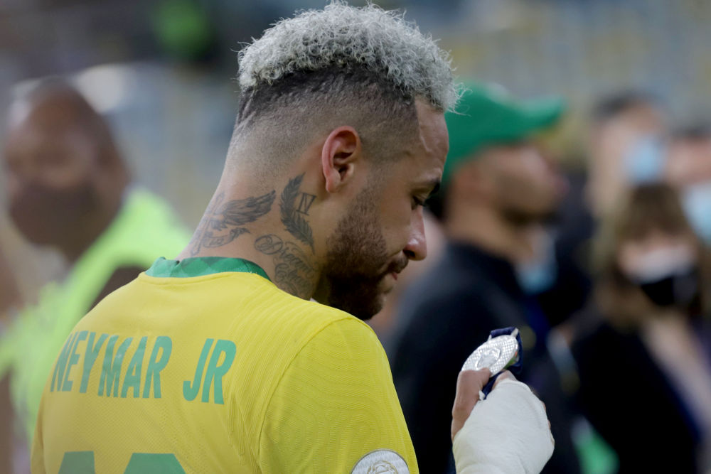 ↑巴西队球员内马尔在比赛后。新华社发(拉赫尔·帕特拉索摄)