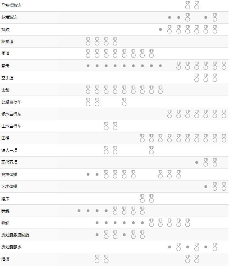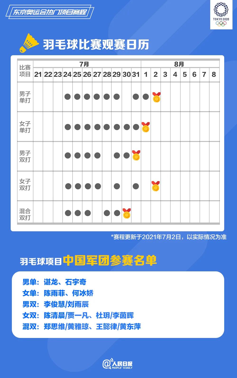 综合人民日报、东京奥运会官网、中国乒乓球协会、中国游泳协会、中国羽毛球协会、中国排球协会、中国国家举重队官网等