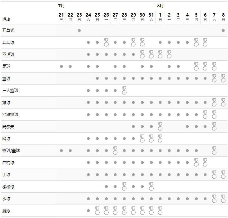 (注:本赛程表根据奥运会延期后的新日期制定,未来可能还会有调整。赛程表最后更新日期2021年7月2日。)