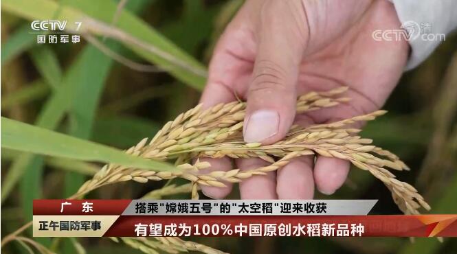央视网消息:去年底,一批重40克的水稻种子和嫦娥五号航天器一起顺利返回地球。经过几个月的育种、播种等过程,9日,这批“太空稻种”已经长出了金黄的稻穗,首轮种植圆满完成,有望成为100%中国原创的水稻新品种。