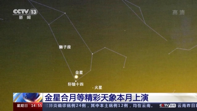 除此以外,本月22日,金星会在空中移动到轩辕十四这颗恒星的附近。轩辕十四也被称为狮子座α(阿尔法),是狮子座中最明亮的一颗恒星。22日,该恒星将出现在金星的正下方位置上,当天傍晚人们可以观赏到这一“星星相吸”的景观。虽然人们很难看到完整的狮子座,但是轩辕十四亮度能保持在1.35等,比右侧火星稍微亮一些,还是比较值得观赏的一个天象。
