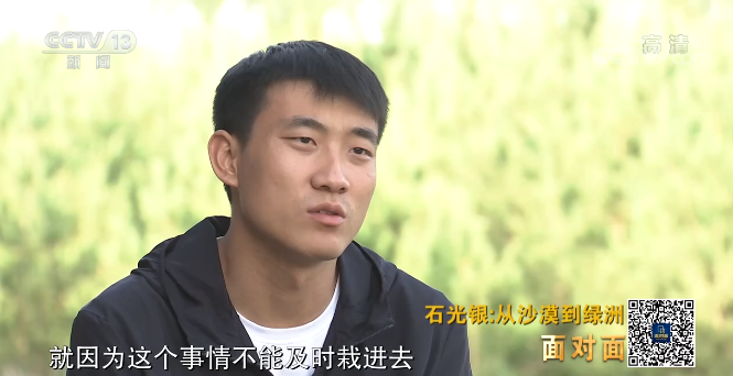 石光银的孙子 石健阳:那年我12岁,当时父亲车上拉的那批树苗因为他出事了不能及时栽进去,就用沙藏法藏起来了。父亲后事办完,爷爷带着我们把那批树苗全栽到了沙漠里。父亲走后,爷爷每天不停地干活,不停地植树,他可能想通过这种方式转移自己的注意力,他把悲伤化成了动力。