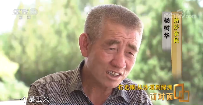 治沙农民 杨树华:1984年,我们家能吃上的食物就两种,一个是玉米,一个是青稞,能吃饱就不错了,不存在存款这个说法。1997年,我们把基本沙子治住了,就开始种庄稼、种蔬菜、种洋芋,那种感觉真是太好了,能吃上蔬菜,吃不完放在市场还能变成钱,有钱花了。现在,我们已经是小康水平了。