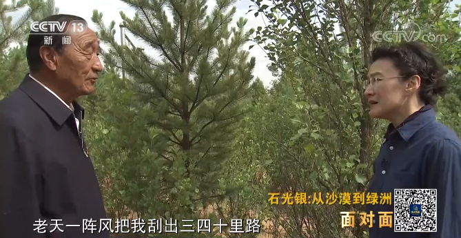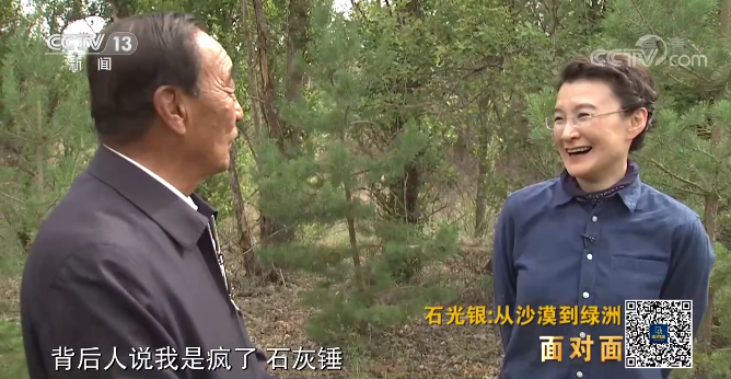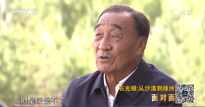 石光银:都说我疯了,一个月48块钱的铁饭碗不要了,叫我“石灰锤”,这是“灰人”(傻人)干的事,“精人”不干。我想的就是治沙,把沙治住,把林子造起来,我们就能吃饱肚子。