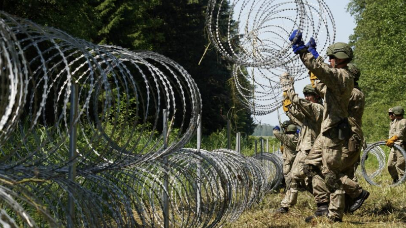 当地时间7月11日,立陶宛国国家广播电视台报道,为阻止难民非法入境,从7月9日起,立陶宛军人正在沿立陶宛与白俄罗斯边境修建铁丝网屏障。该屏障长550公里,将花费4100万欧元(约合人民币3.14亿元)。