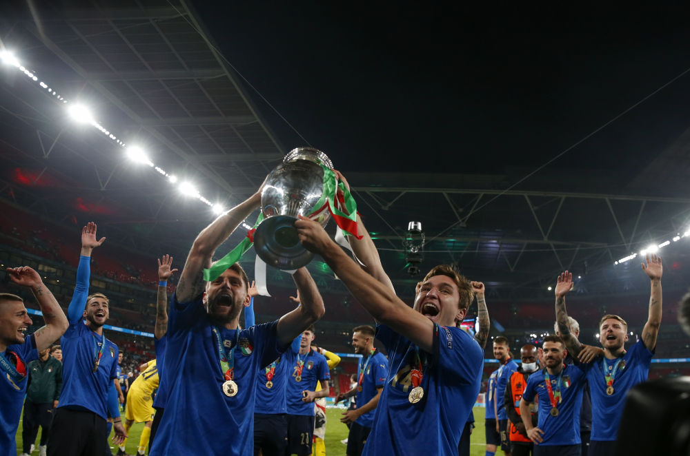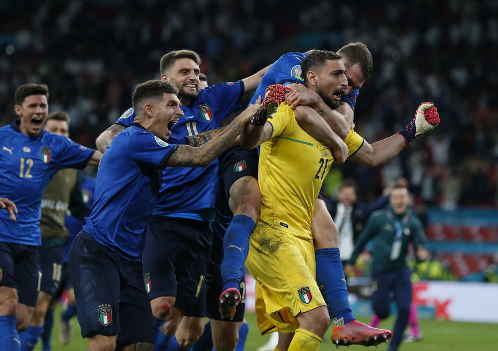 虽然意大利队贝洛蒂和若日尼奥在第二和第五轮主罚的点球都被皮克福德扑出,但专门为点球大战而换上的英格兰前锋拉什福德、桑乔也连续脚软。19岁的阿森纳小将萨卡最后一个登场未能顶住压力,多纳鲁马扑出他主罚的点球,意大利陷入狂欢,英格兰夺冠梦碎。