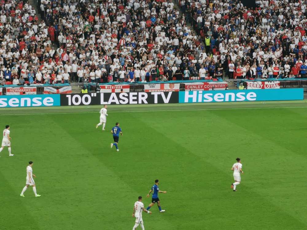 这是英格兰在1966年本土世界杯夺冠后第一次打进重大赛事决赛,这是他们的绝对主场,涌入6万7千余名观众的伦敦温布利大球场只有不到十分之一的意大利球迷。