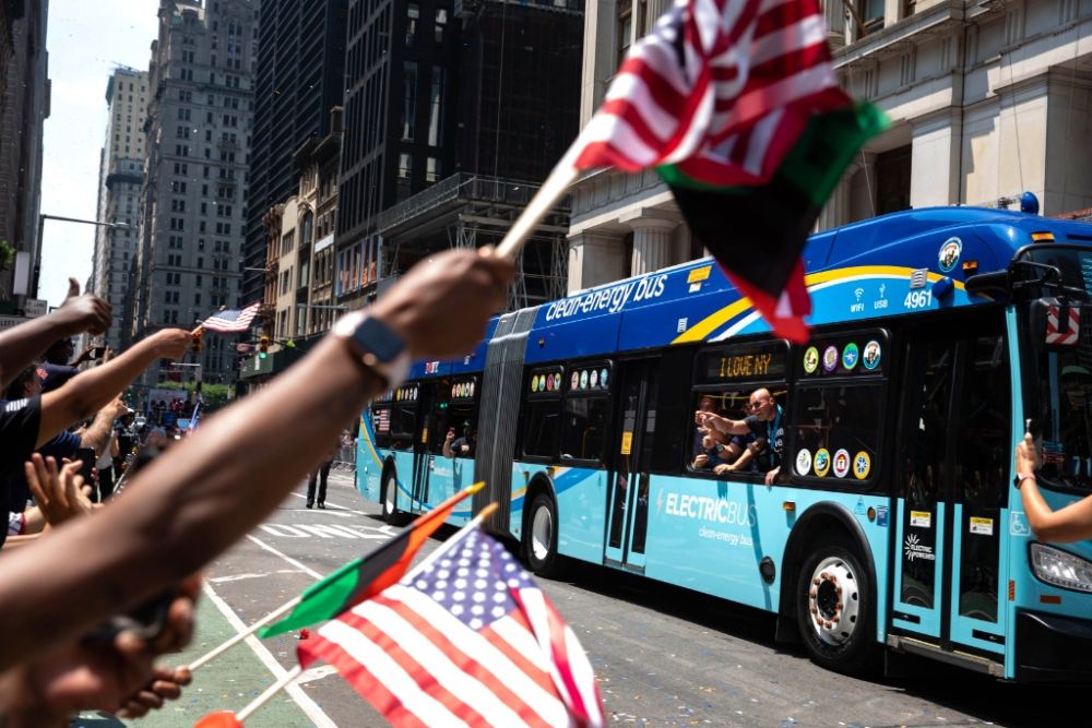 7月7日,人们在美国纽约参加抗疫“关键行业”员工巡游。(新华社发,郭克摄)