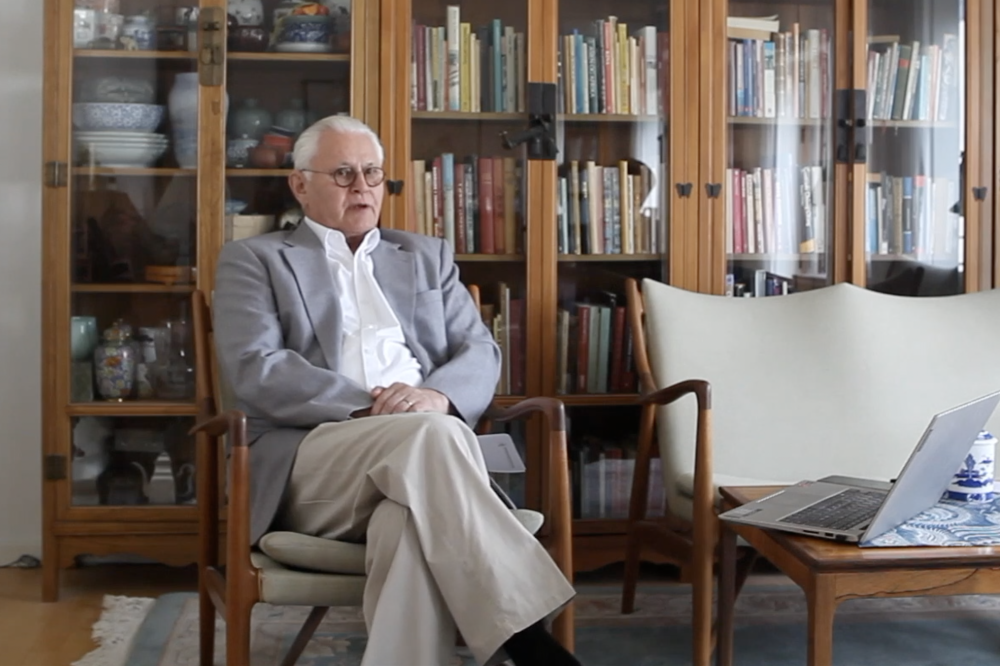 丹麦资深外交官、汉学家曹伯义接受新华社记者采访。视频截图