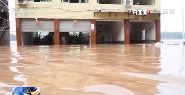 在广安市广安区肖溪古镇,水位也在不断上涨,一些地势较低的商铺已经有半层楼被淹没在洪水之中。为了保证群众安全,武警官兵加强巡查监测。