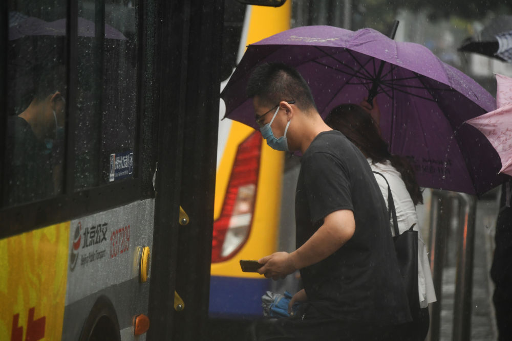 7月12日, 在北京市海淀区四通桥东公交站,市民准备乘坐公交车。