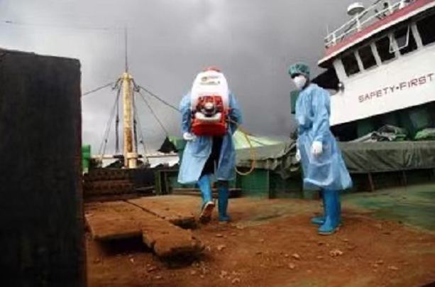 △缅甸医务人员在与孟加拉国的边贸站进行防疫消杀工作