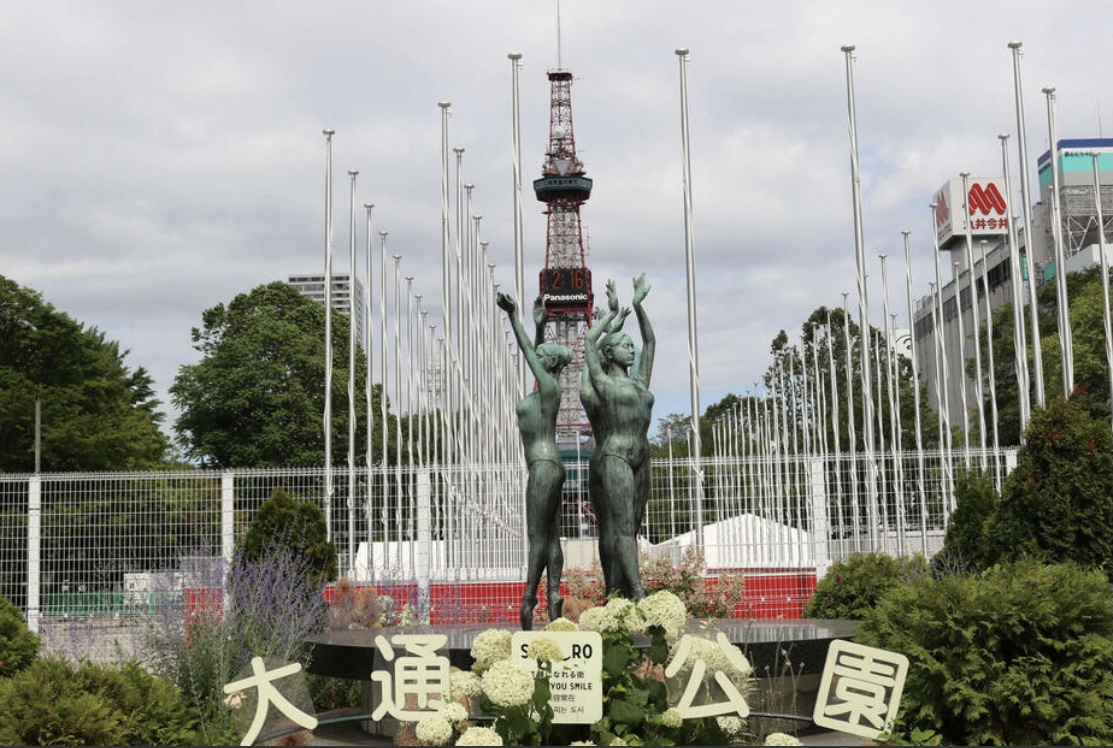 大通公园是札幌市的旅游景点之一,为进行施工,从今年4月起,大通公园部分区域禁止游客入内。