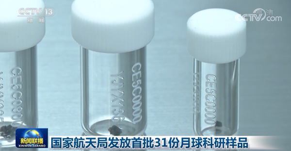 央视网消息(新闻联播):今天(7月12日),国家航天局发放了嫦娥五号任务首批共31份月球科研样品。这标志着月球样品科学研究工作正式启动。