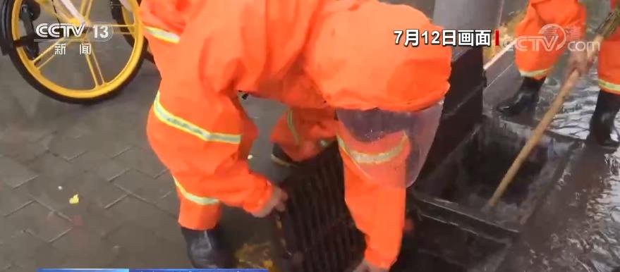 在长虹桥附近一处积水点位,朝阳区环卫中心几名职工正冒雨进行推水作业,同时清理雨篦子上的杂物,防止排水堵塞。由于瞬时雨量增大,纸屑、垃圾等紧贴着排水口难以清理,环卫工人只能徒手清掏落叶杂物、疏通排水口。针对重点区域路段,增加环卫工人数量,派党员干部作为第一梯队,带队及时开展积水路段路面的推水、抽水作业和道路杂物的及时清除,最大程度保障路面畅通。