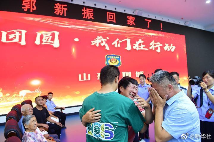 【终于找到你!电影失孤被拐儿童原型郭新振24年后被找回】公安部7月13日召开新闻发布会,公安部刑事侦查局副局长童碧山介绍,近期,公安部技术比对会战专班发现线索后下发指令,山东、河南、山西等地公安机关密切协作、扎实工作,成功找回电影《失孤》的被拐儿童原型郭新振(男,现年26岁,原籍山东聊城),并顺线侦查,抓获了当年拐卖郭新振的一男一女2名犯罪嫌疑人,目前该案还在进一步扩线深挖。7月11日,山东、河南两地公安机关在山东省聊城市,为郭刚堂、郭新振一家人举行了认亲仪式,离散24年的家庭终获团聚。(记者 任沁沁 熊丰,图为寻亲现场 公安部提供)