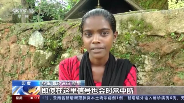 当地学生 瓦孙达拉·斯里:我家里没有移动信号,所以我来到附近山顶的寺庙获取一些网络,即使在这里,信号也会时常中断。