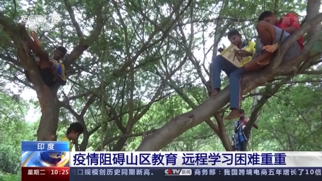疫情期间,为了完成在线课程,孩子们只好爬到树上,在树杈上找到一个合适的位置,可以获取微弱的信号开始在线学习。上午9点到下午4点 ,大树成了他们的空中教室。
