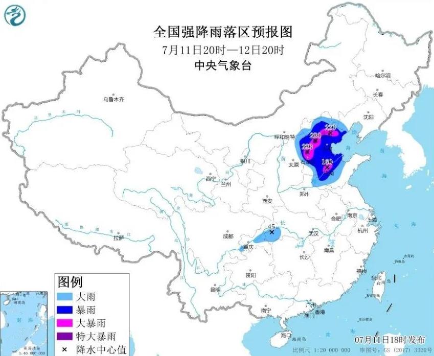 7月11日9时,中国气象局启动四级应急响应,后于20时提升至三级。