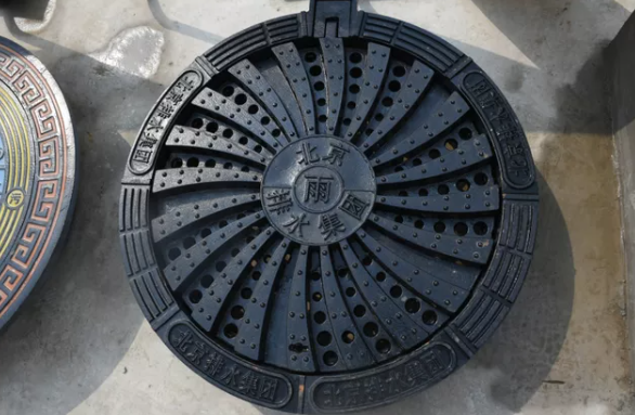 旋流井盖设计成了镂空的立体结构,比普通井盖嵌入深度多2厘米,表面下凹部分不仅有很多圆形排水小孔,还有20个叶片,叶片的侧面也有很多孔。