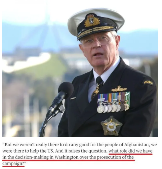 澳大利亚退役海军上将、曾在2001年出兵阿富汗时担任澳国防军司令的克里斯·巴里如今也对这场该国史上最长的战争表现出越来越多的疑惑:“我们就像美国人那样草率地离开了。我们放弃了阿富汗,20年的努力化为乌有。”