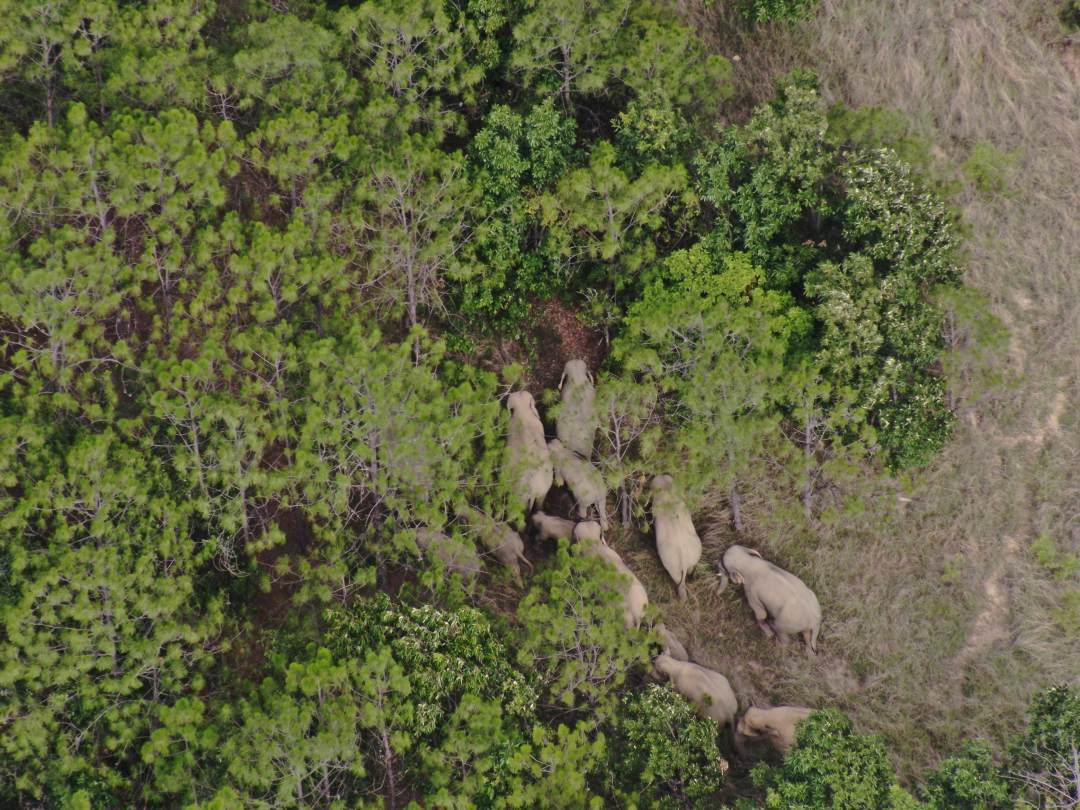 7月12日17时至7月13日17时,象群总体向南移动10.5公里,持续在红河州石屏县龙武镇附近林地内活动,象群在监测范围内,人象平安。