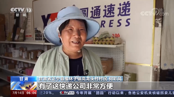 甘肃省正宁县榆林子镇高龙头村村民 何彩凤:有了快递公司非常方便,外面的东西能寄回来,家里的土特产能寄出去,真的是非常方便了老百姓。