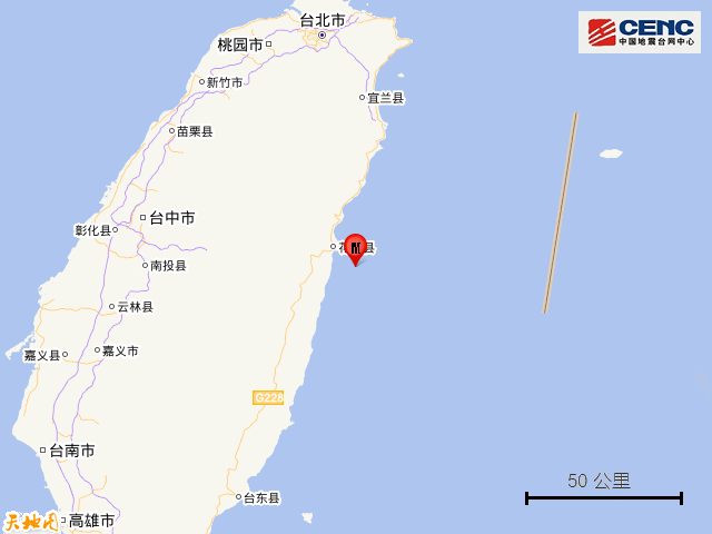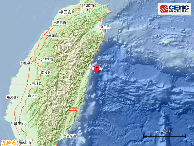 历史地震:根据中国地震台网速报目录,震中周边200公里内近5年来发生4级以上地震共210次,最大地震是2019年4月18日在台湾花莲县海域发生的6.7级地震(距离本次震中17公里),按震级大小前50次历史地震分布如图。