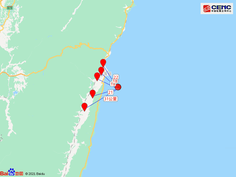 周边县城:震中距吉安乡18公里、距花莲市18公里、距寿丰乡21公里、距新城乡22公里、距凤林镇31公里,距花莲县18公里,距台北市129公里。