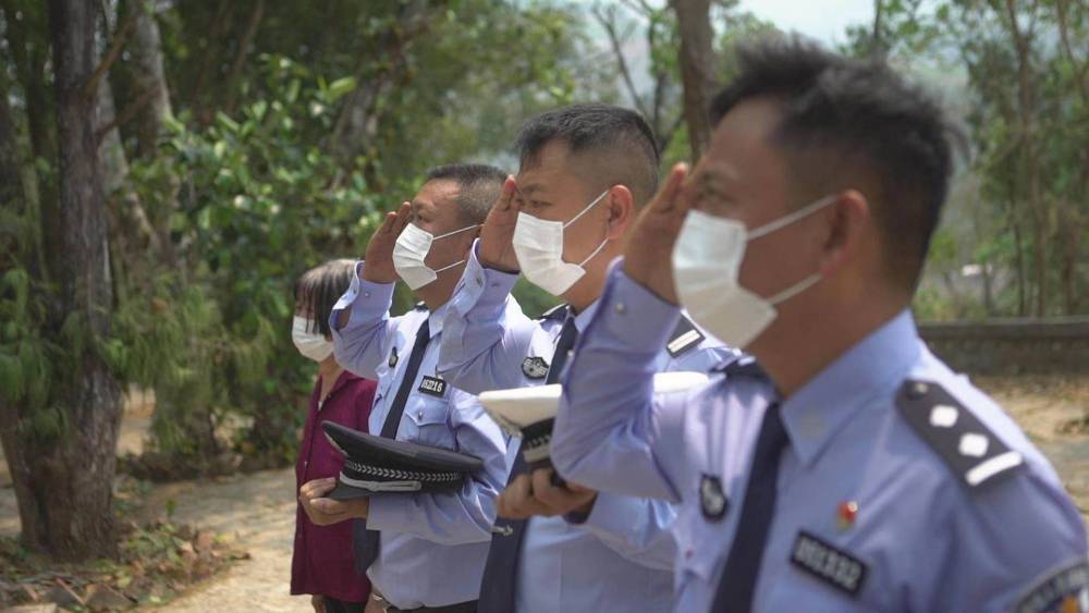 “我们要像您要求的一样,做一个好人。”2020年清明节,彭太珍领着张家三兄弟为父亲扫墓,他们身着警服,在墓碑前敬礼宣誓。