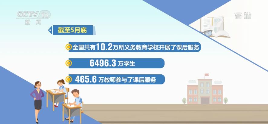 央视网消息:2017年以来,教育部积极推进课后服务工作。据介绍,截至今年5月底,全国共有10.2万所义务教育学校开展了课后服务,6496.3万学生、465.6万教师参与了课后服务。
