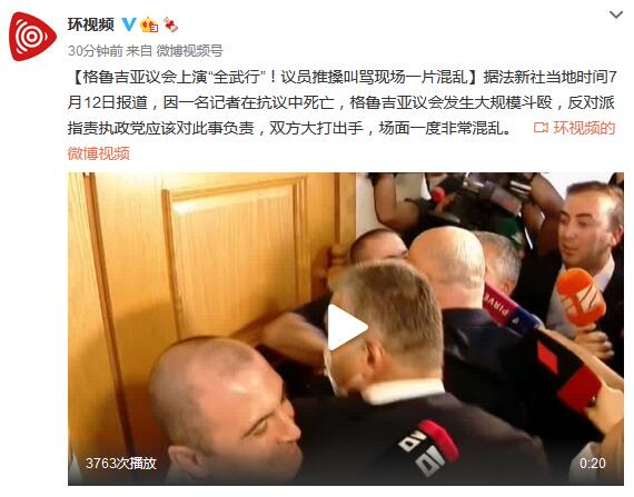 据法新社当地时间7月12日报道,因一名记者在抗议中死亡,格鲁吉亚议会发生大规模斗殴,反对派指责执政党应该对此事负责,双方大打出手,场面一度非常混乱。