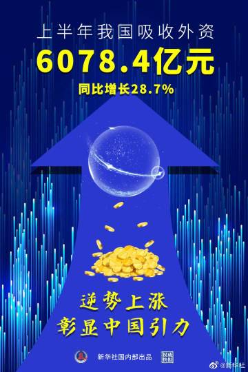 【#权威快报#|#上半年我国实际使用外资6078.4亿元#】商务部14日发布数据显示,2021年1至6月,全国实际使用外资6078.4亿元,同比增长28.7%,较2019年同期增长27.1%。其中,服务业实际使用外资4827.7亿元,同比增长33.4%;高技术产业实际使用外资同比增长39.4%,“一带一路”沿线国家、东盟和欧盟实际投资同比分别增长49.6%、50.7%和10.3%。(记者邹多为、谢希瑶、于佳欣;设计张晨光)