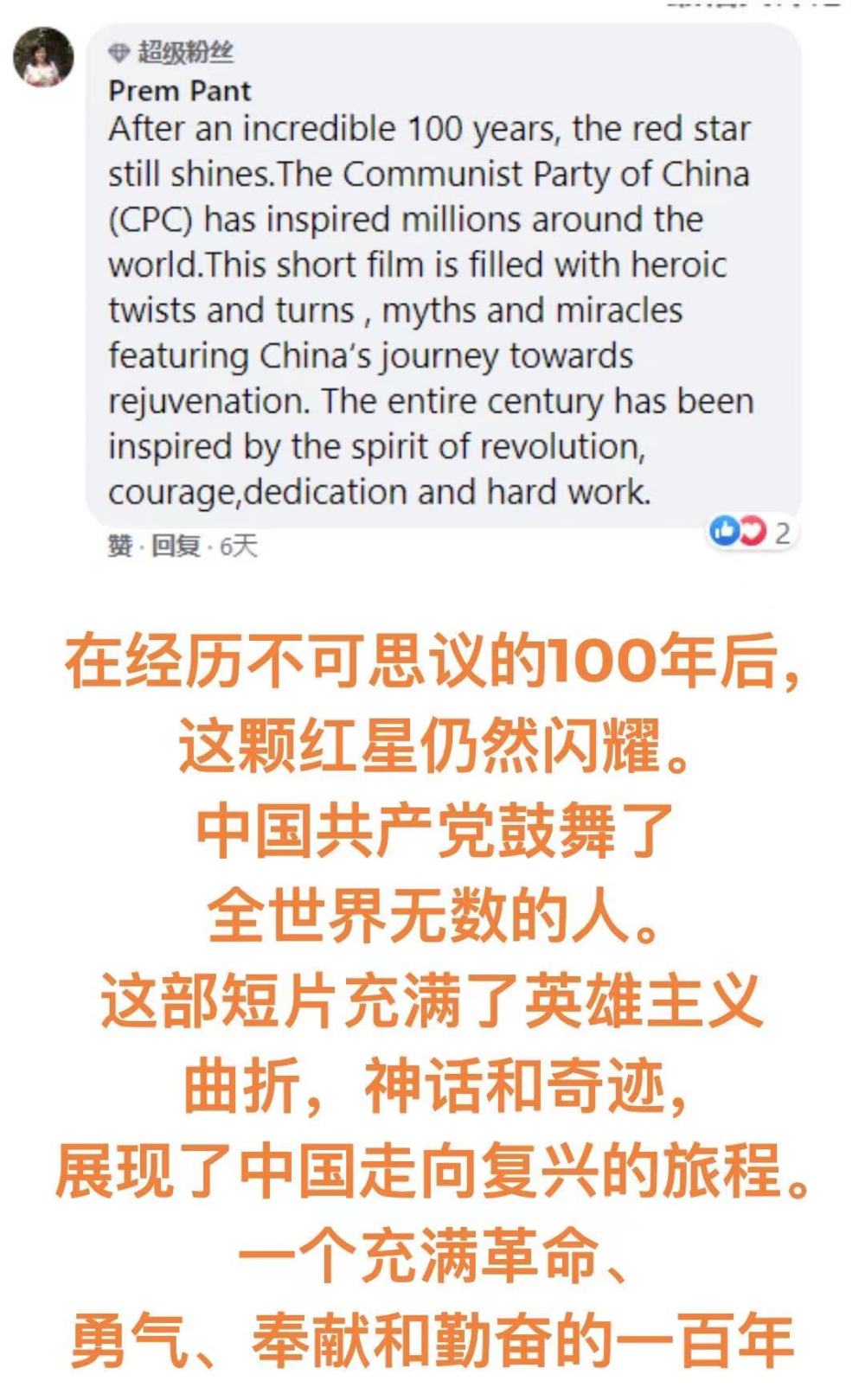 新华社北京7月14日电 庆祝建党百年之际,新华社发布了一部视觉震撼力极强、全海外视角的创意微电影。八分钟时间高度浓缩了不同时代,中国共产党带领中国人民完成一个又一个奇迹。作为首个完全从外国人视角纪录1921-2021的微电影,影片在海外获得热烈反响。“看到真相!”“相信了!”等词频频出现在脸书、优兔和推特留言区。影片在脸书平台的观看量超过400万。