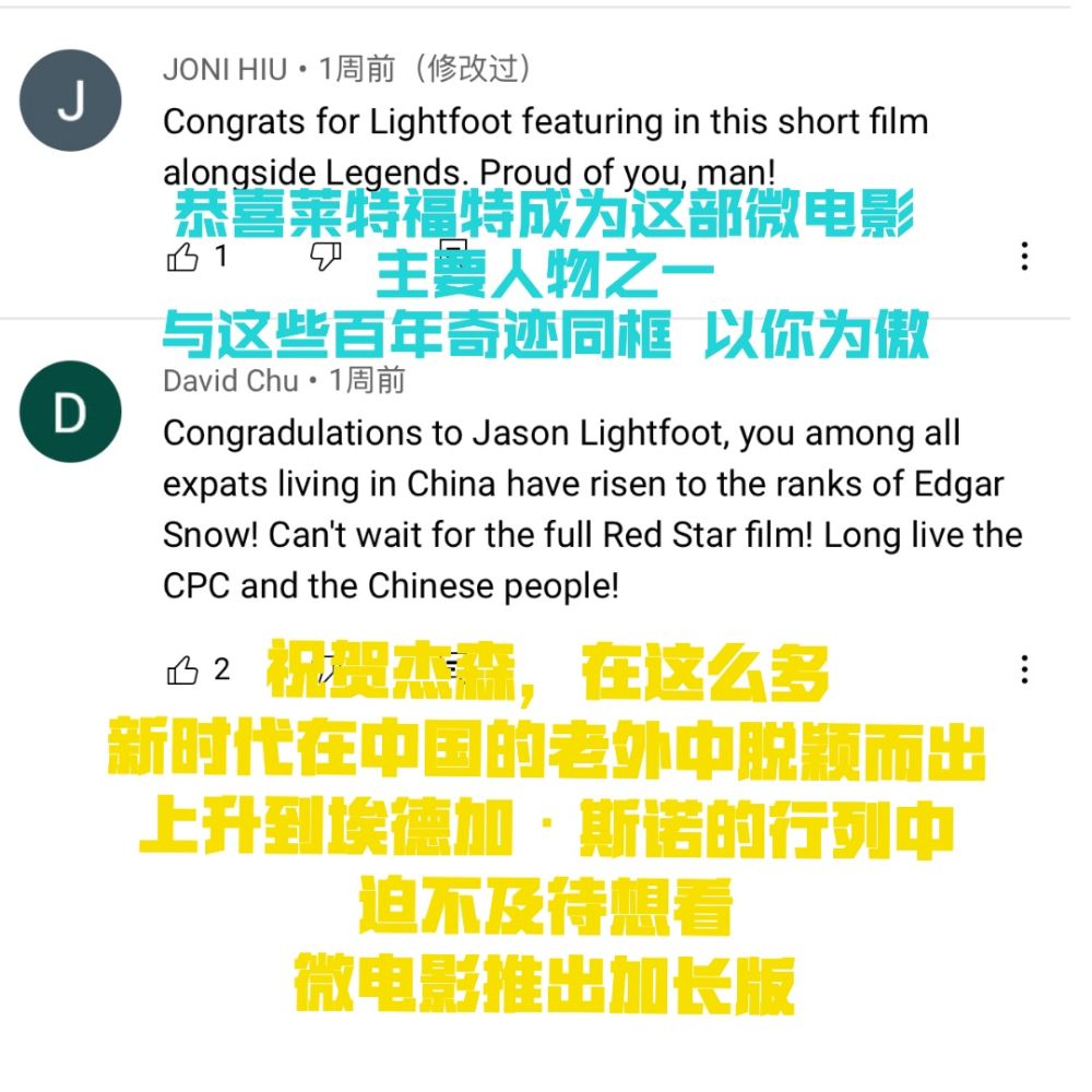 杰森·莱特福特最近因在社交媒体上力挺中国,被BBC点名。这位2012来到中国,亲眼见证中国真相的“有意思”先生无法理解西方媒体为何抨击他。在他看来,他只是说了实话。他在微电影《红星闪耀中国》的出现,让海外观众看到了新时代中国的真实和可爱,不少海外网友留言为杰森打Call。